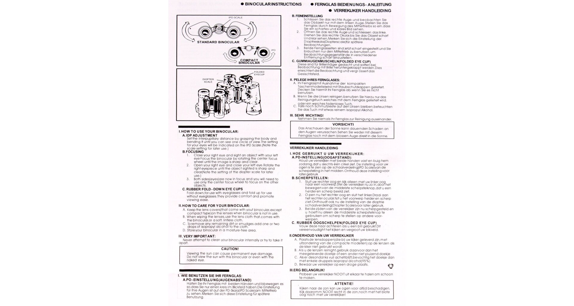 Upozornenie: Nikdy sa nepozerajte ďalekohľadom do svetelných zdrojov, najmä slnka a laserových lúčov. Ponechajte kryty šošoviek aj objektívov nasadené, pokiaľ ďalekohľad nepoužívate.Na čistenie šošoviek a objektívu používajte výhradne antistatickú handričku. Ďalekohľad nerozoberajte. Nevystavujte ďalekohľad nadmernej vlhkosti.