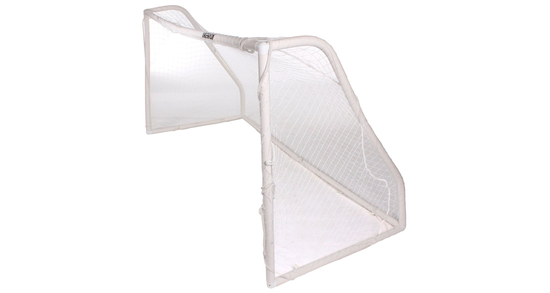 Čítať viacVäčší skladacia futbalová bránka Merco Catcher 32 s rozmerom 240 x 120 x 90 cm (šírka x výška x hĺbka) je určená pre tréning alebo rekreačný futbal malých začínajúcich futbalistov. Jej výhodou je nízka hmotnosť (iba 4,6 kg), vďaka ktorej sa s bránkou ľahko manipuluje. Konštrukcia bránky je tvorená rúrkovými dielmi z odolného plastu (UPVC) s priemerom 42 mm, ktoré do seba dokonale zapadnú vďaka špeciálnym spojkám s nástrčnými kolíkmi. Montáž podľa návodu zvládne rýchlo a jednoducho iba jedna osoba. Po zostavení bránky zostáva ku konštrukcii prichytiť polyetylénovú sieť pomocou plastových háčikov a umiestniť bránku na miesto. Pretože je futbalová bránka veľmi ľahká, je nutné ju k zemi ukotviť, a to pomocou priložených oceľových kolíkov v tvare U.