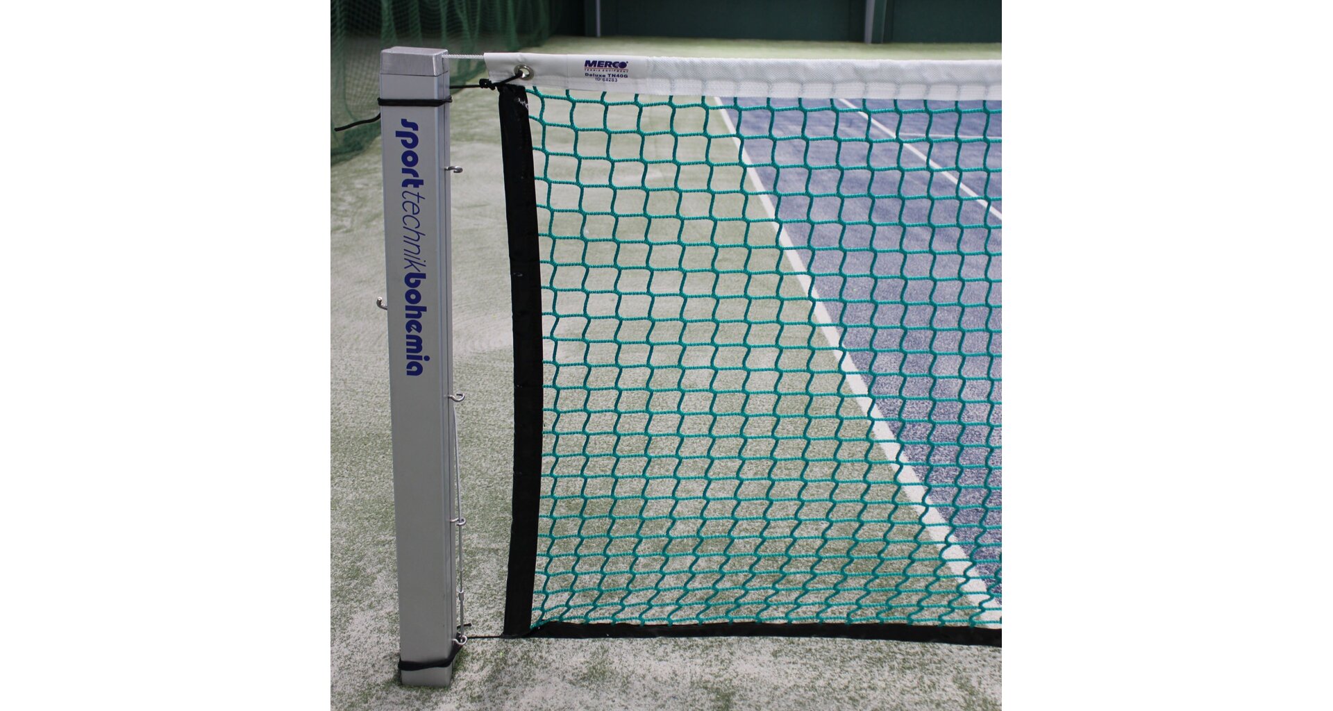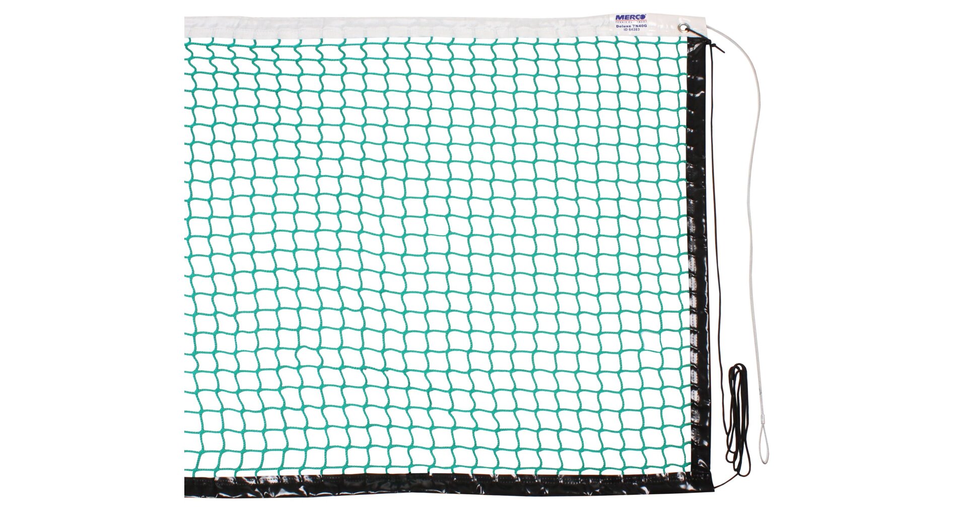 Tenisové siete radu Merco sú vyrobené od renomovaného európskeho výrobcu v takej kvalite, aby spĺňali požiadavky normy EN 1510. Tenisová bezuzlová sieť Merco Deluxe TN50G vhodná pre tenisové kluby a pre hru na všetkých výkonnostných úrovniach. Sieť je vyrobená z vysoko pevného, bezuzlového polypropylénu, ktorý je odolný proti UV a poveternostným vplyvom. Vďaka tomu je sieť vhodná na použitie v hale aj na vonkajších kurtoch. Rozmery siete sú 12,8 x 1,07 m, veľkosť oka 35 mm a hrúbka 5 mm. Horná biela PES páska pridáva sieti dlhú životnosť. Sieť sa napína pomocou oceľového lanka, ktoré je možné jednoducho skrátiť.