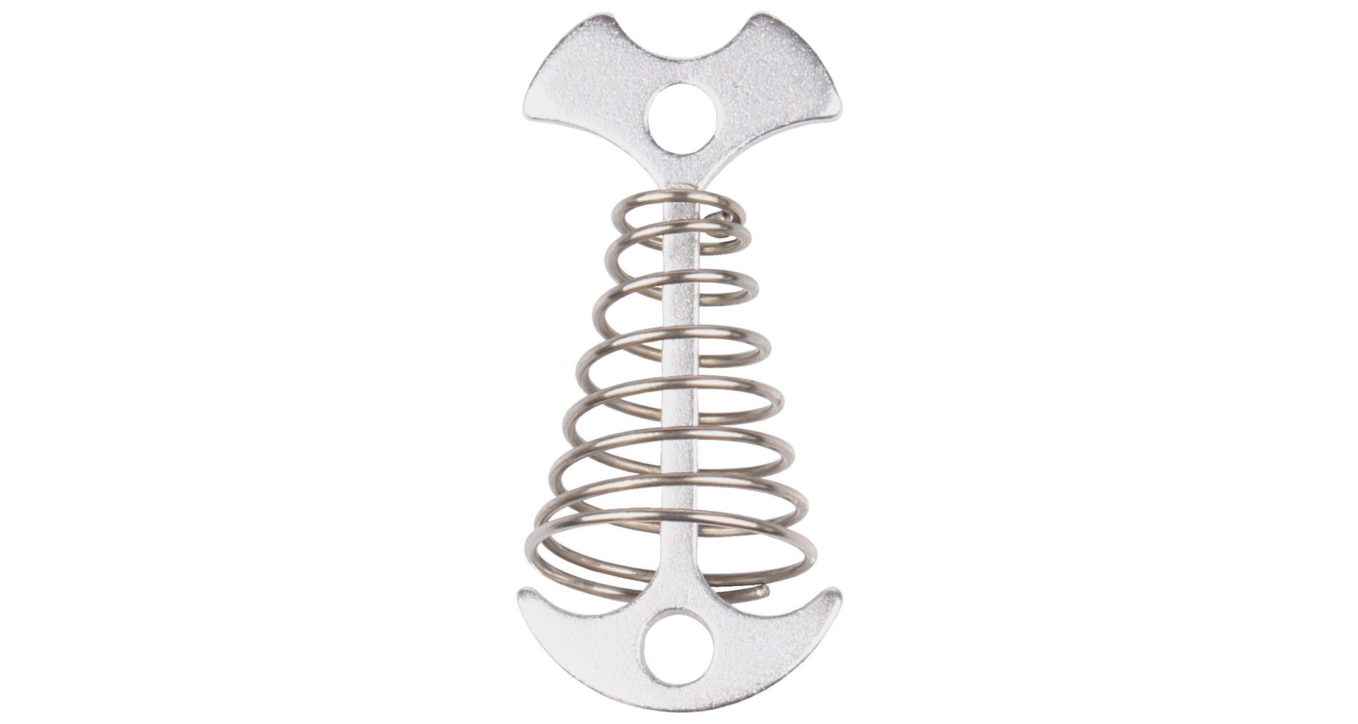 KúpiťHliníkový úchyt - rybia kosť s pružinou - na zachytenie stanovej šnúry bez zatĺkania kolíkov