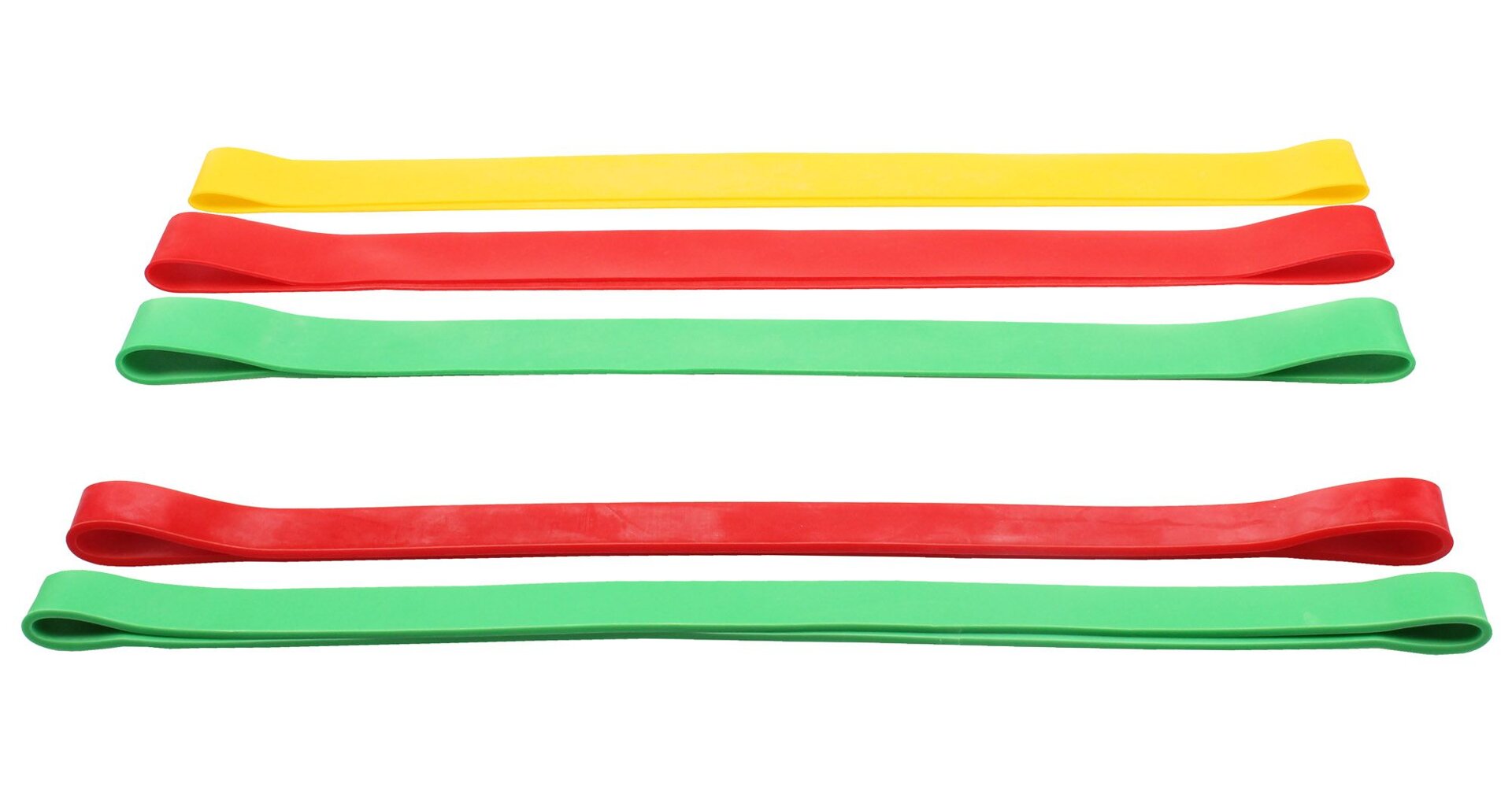 Praktická sada odporových gúm Pack O Band obsahuje za veľmi výhodnú cenu 3 odporové gumy Fitness O Band s obvodovou dĺžkou 57 cm a šírkou 2 cm s tromi hrúbkami ( zelená 1,35 mm – tuhá, červená 1 mm-stredne tuhá, žltá 0,75 mm-mäkká) a 2 odporové gumy Aerobic O Band s obvodovou dĺžkou 52 cm, šírkou 1,2 cm a dvoma hrúbkami (červená 2,2 mm – tuhá, zelená 2 mm – stredne tuhá). Gumy môžete ľubovoľne kombinovať a meniť tak náročnosť cvičenia podľa potreby a svojich individuálnych požiadaviek.