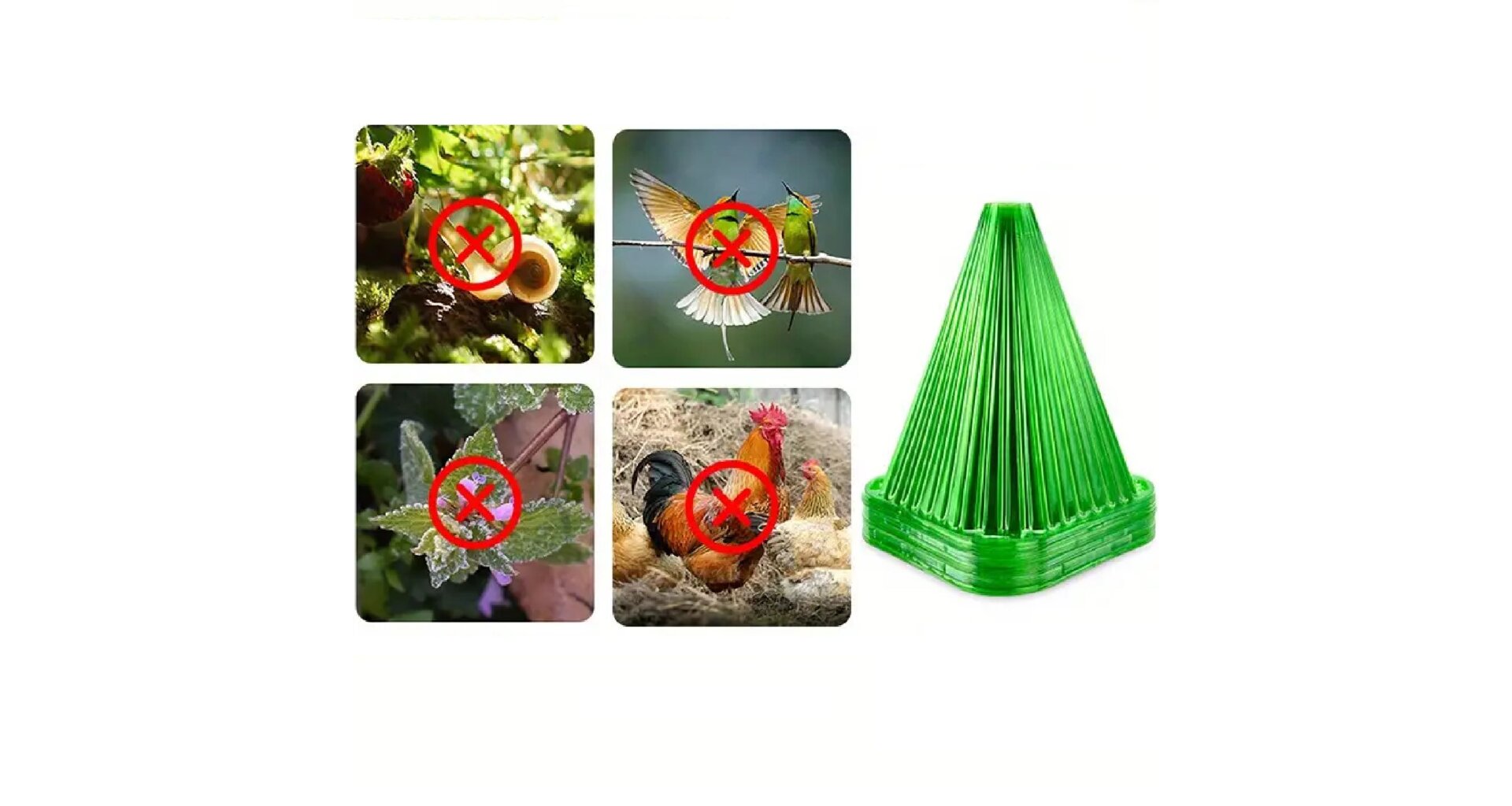 Merco Plant Protect Cone je praktická pomôcka pre každého záhradkára, ktorý chce ochrániť svoju úrodu pred slimákmi, vtákmi, mrazom apod. Tento šikovný kryt na sadenice a menšie rastliny v tvare kužeľa je vyrobený z plastu, jeho výška je 22 cm a spodná šírka 19 cm. Kužeľa môžete upevniť do zeme kolíky vďaka otvorom v rohoch (kolíky nie sú súčasťou balenia). Súprava obsahuje 10 kužeľov.