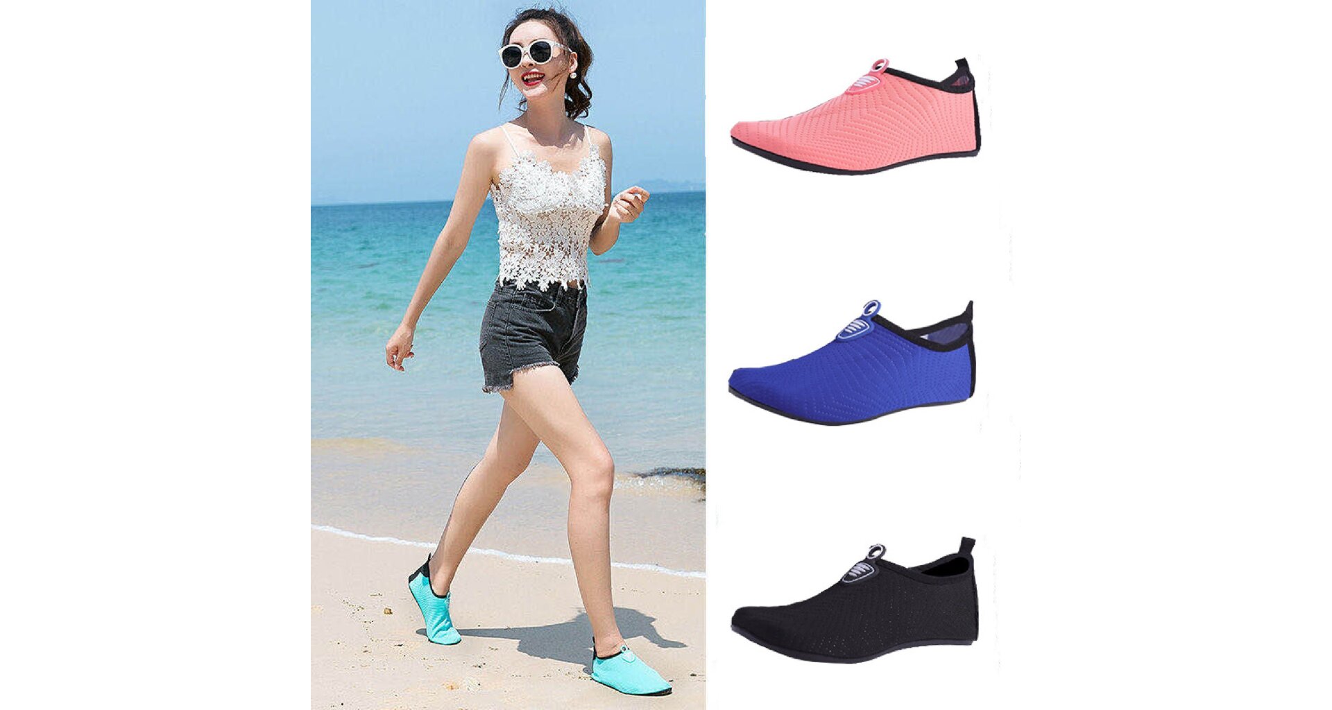 KúpiťPohodlné topánky z elastického materiálu s gumovou podrážkou. Vhodné k bazénu, na pláž, na jógu apod.