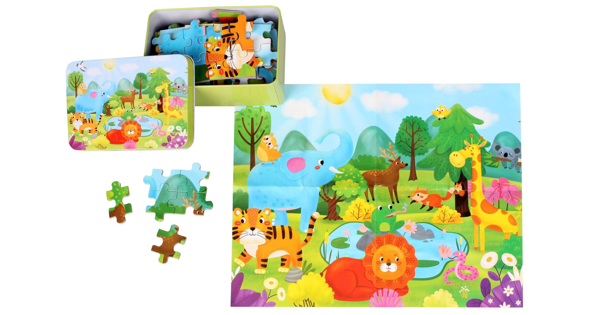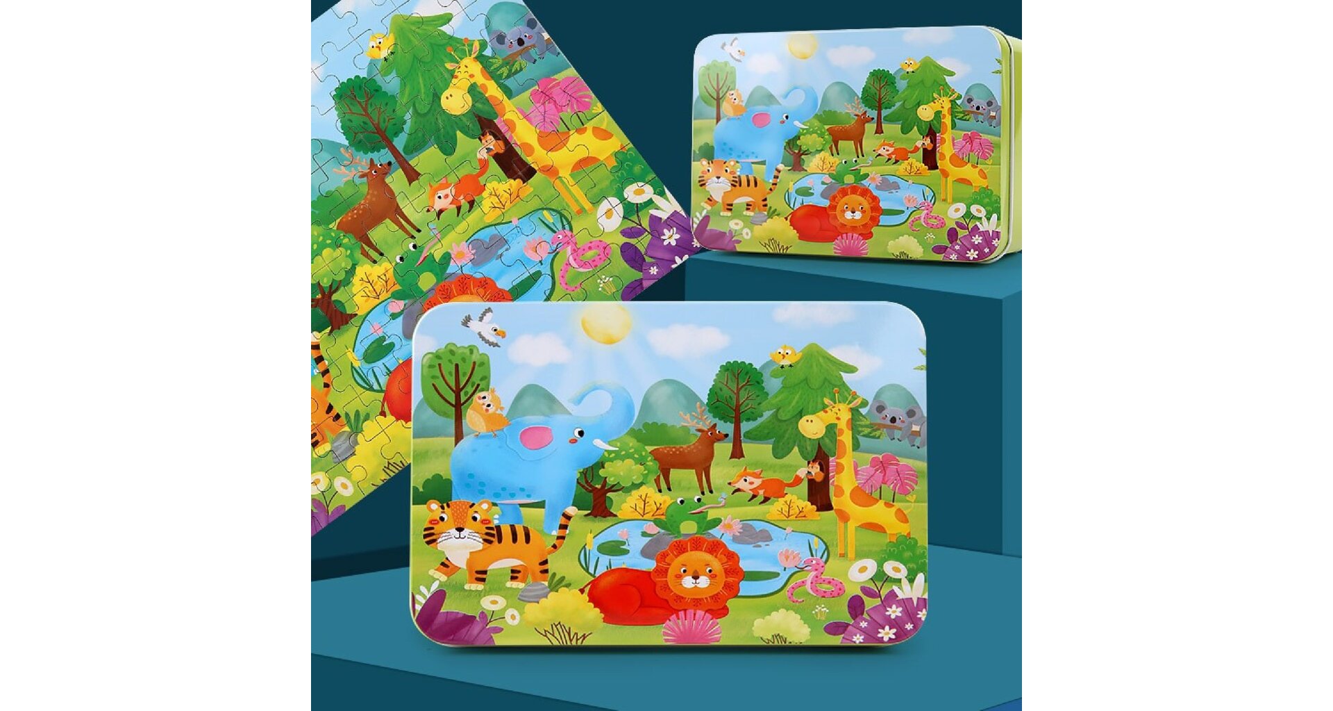 KúpiťPuzzle pre deti 100 ks s obrázkom zvieratiek. Vek 3+, praktická kovová krabička.