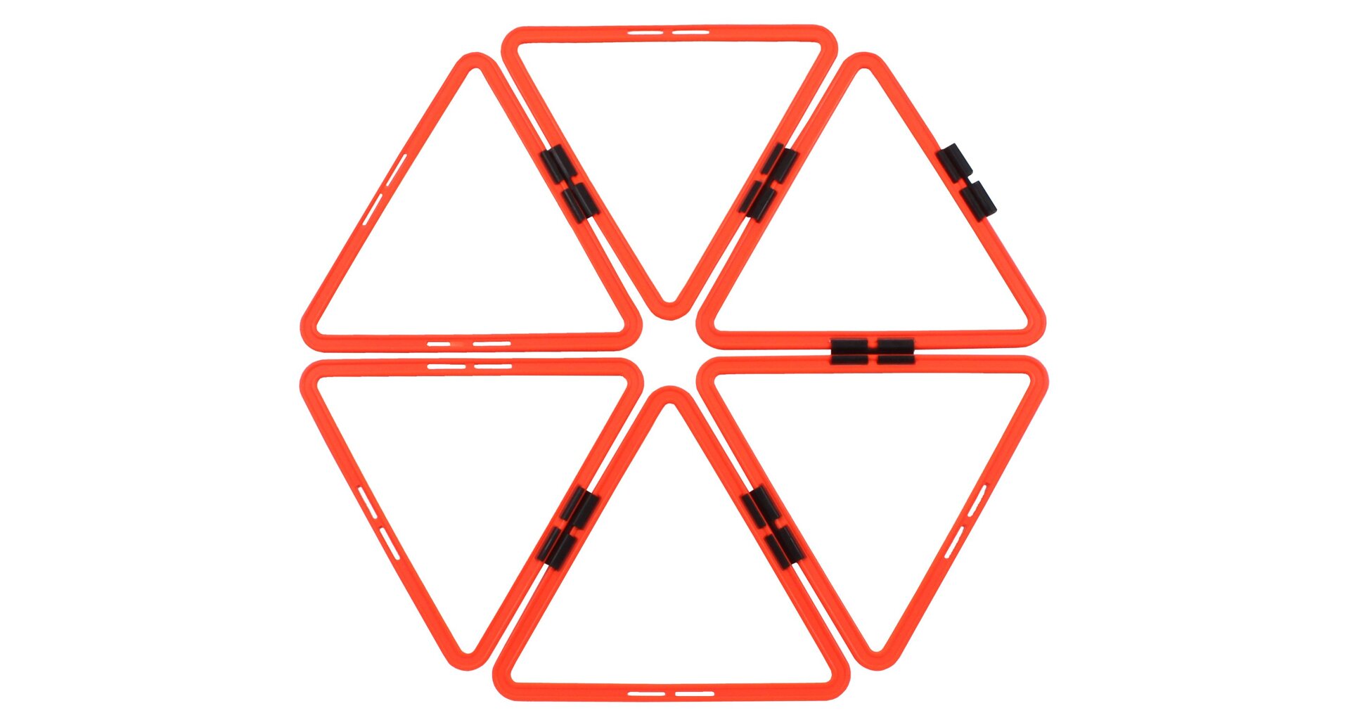 Tréningovú sadu agility trojuholníkov využijete pre skupinové aj individuálne cvičenia koordinácie alebo odrazov všetkých vekových kategórií. Celá sada šiestich kusov vám dorazí v praktickom batôžku, ktorý môžete ľahko prenášať a skladovať. Súčasťou balenia je aj šesť spojok pre spojenie všetkých častí. Merco Triangle Ring Vám umožní vytvárať nekonečné množstvo rôznych variantov a obtiažností pri tréningu rýchlosti, rovnováhy a koordinácie bez ohľadu na vaše športové zameranie. Túto pomôcku môžete kombinovať aj s ďalšími tvarmi, ktoré máme aj v ponuke.